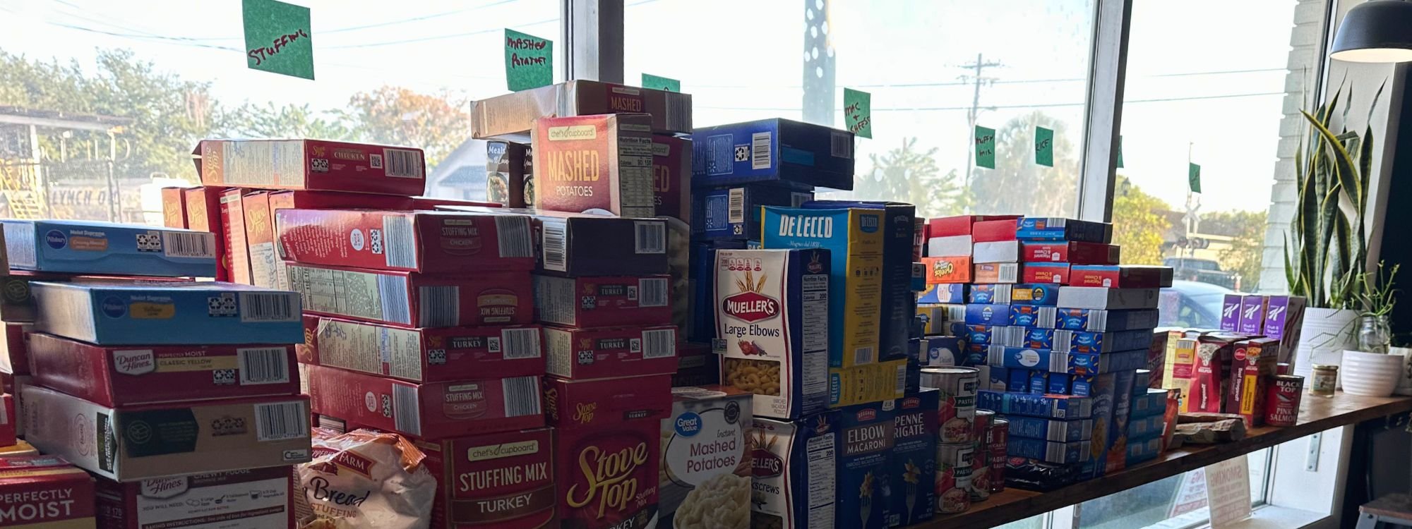 One way weβre doing this is through our temporary food pantry. Instead of pre-packed boxes, clients can select the items they need in a mini store setting, preserving choice and autonomy. This approach helps families put together a Thanksgiving meal that reflects their own plans and traditions.